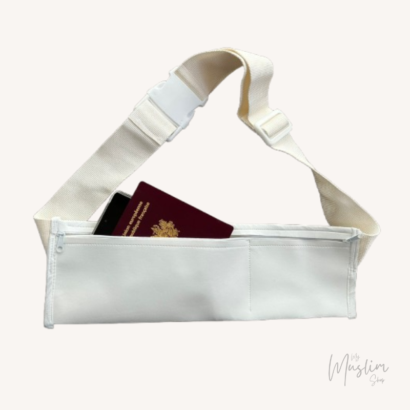 Préparez-vous pour le Hajj ou la Omra avec cette ceinture banane blanche de haute qualité, fabriquée en Turquie. Pratique et confortable, elle comprend plusieurs poches pour transporter vos objets essentiels tout en assurant un maintien optimal. Son design avec sac banane intégré est idéal pour garder vos affaires à portée de main pendant vos prières.