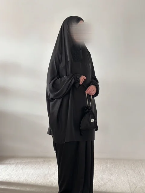 Composé de deux pièces assorties – une jupe fluide et un voile intégral avec bras intégrés – il assure une couverture à 100% tout en restant léger et agréable à porter.